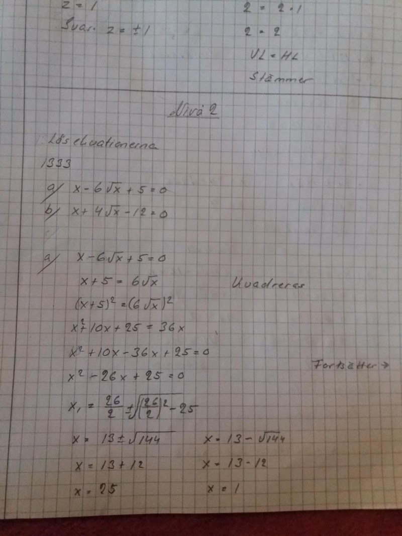 Pröva gärna att även lösa ekvationen med hjälp av lämplig substitution.