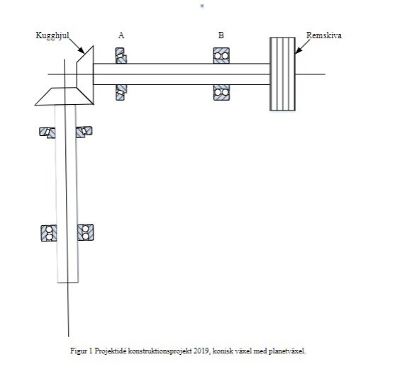 En konisk växel med planetväxel, där syftet är att dimensionera lager för en given livslängd.