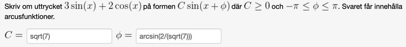 Micimacko skrev:Tror du fick fel där du bytte ut C x sin=2. Du verkar ha stoppat in ditt uträknade cos istället för C i nästa rad.