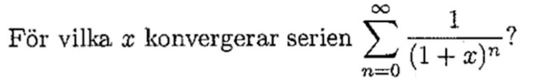 Börja med att repetera att den geometriska serien för ett visst villkor på , vilket?