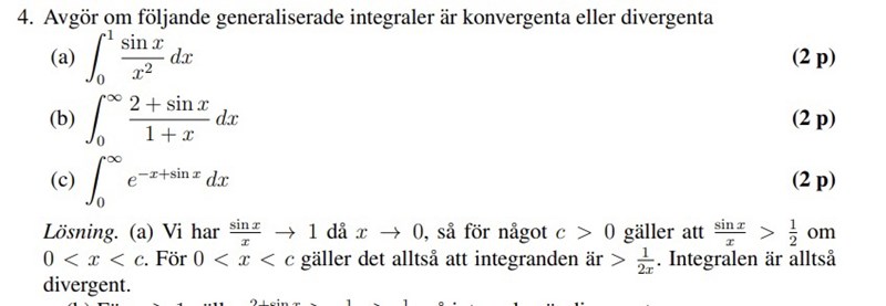 förstår en del, men inte allt. alla tittar mest på f(x) som funktion, men behöver man inte faktiskt derivera funktionen för att se om integralen finns (=> konvergerar)? är det ett steg som är underförstått och inte utskrivet eller finns det något samband mellan konvergens av integral och funktion som jag missat?