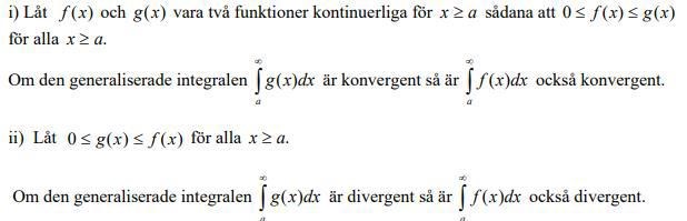 så om jag ska undersöka en funktion f(x) alltså visa om den är divergnet eller konvergent och jag hittar en funktion som är större g(x) men den visar sig att vara divergent ska jag då hitta en funktion som är mindre än f(x) och visa att den är divergent?
