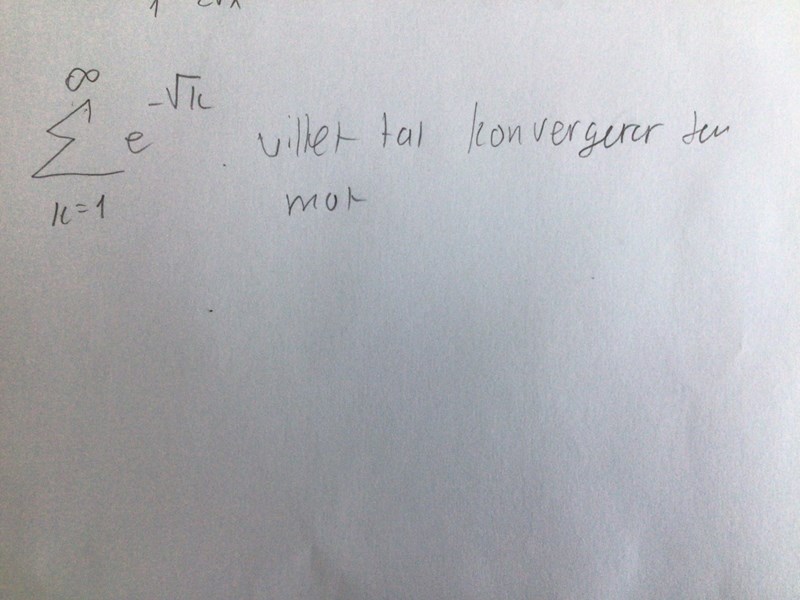 Hej! På denna fråga utför jag cauchys integraltest och byter sen ut -roten ur x mot u men fastnar sedan.