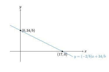 Linjen 2x + by - 34 = 0 avgränsar tillsammans med de positiva koordinataxlarna en triangel i första kvadranten. Bestäm talet bom triangeln har arean 8,5 a.e.