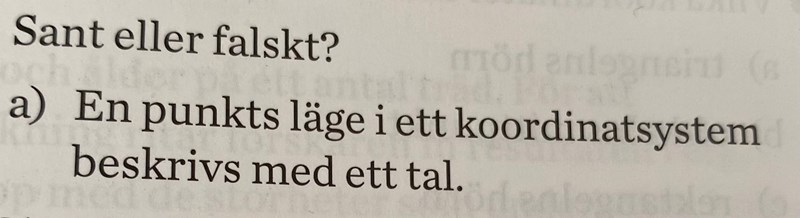 Detta är tydligen falskt. Men det borde väll ändå vara sant? Skulle gissa på att det är falskt för att man syftar på att man inte säger tal utan koordinater, men det är väll fortfarande tal?