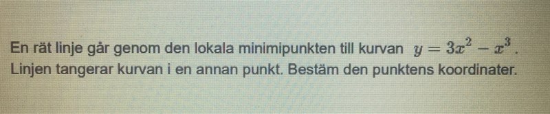y’=6x-3x^2 —> 0=6x-3x^2 ger x=0 samt x=2
