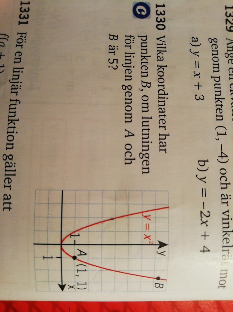 Ahh varför tänkte jag inte på det! Jag kan hitta den räta linjens ekvation för linjen som då blir y=5x-4, men det kanske är ett onödigt steg. Man kan kanske använda sig av formeln för lutningen k lika med 5 och försöka lösa det?