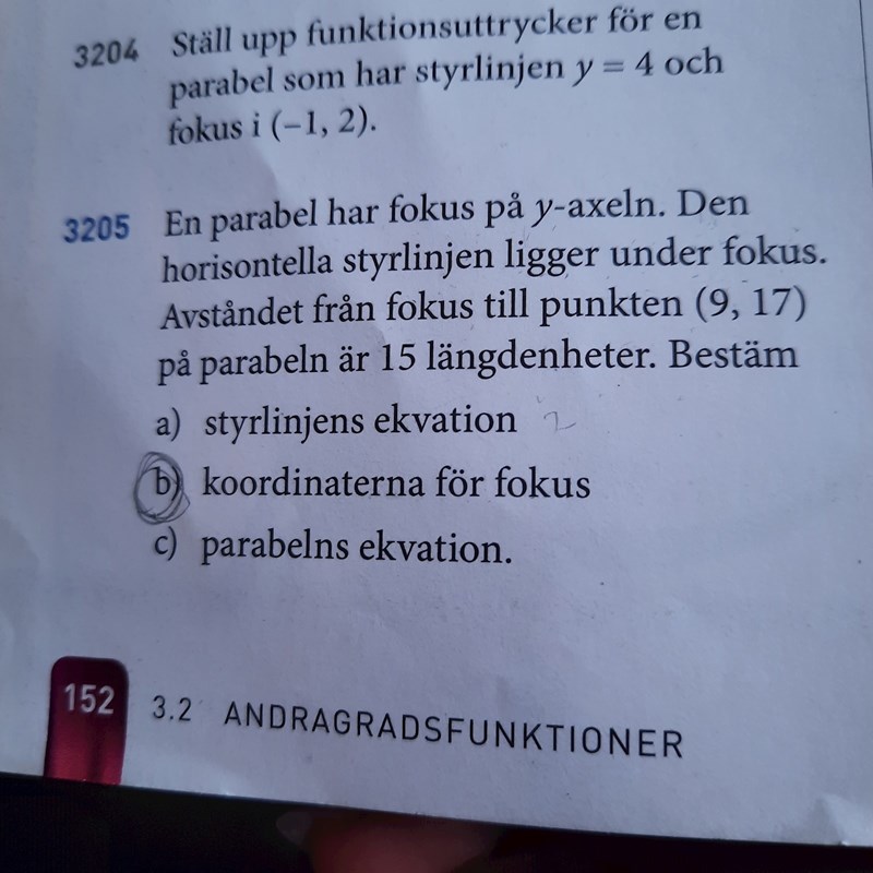 Det blev en utvikning som inte var relevant för din fråga, men om vi ser positivt på det så har du nu förhoppningsvis en större förståelse för hur fokus, parabel och styrlinje hänger ihop?