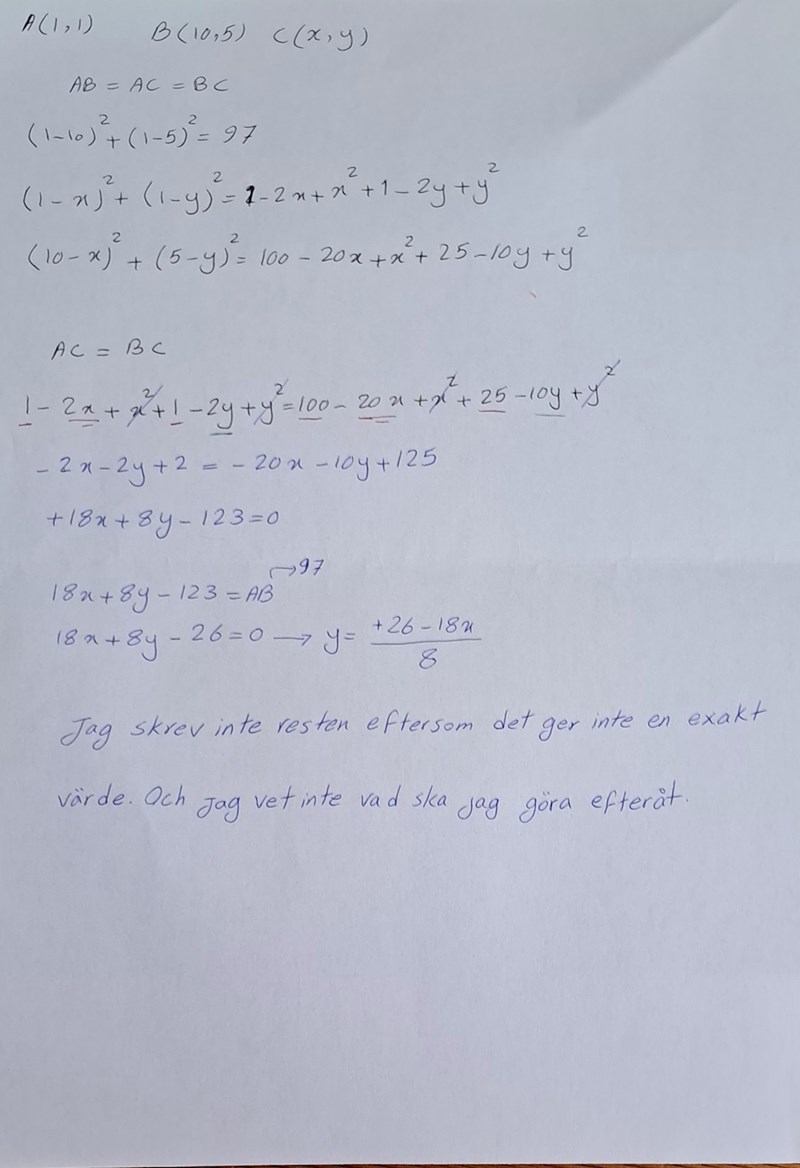 Men det är typ två ekvationer med x,y och en annan ekvation som ger roten ur 97.