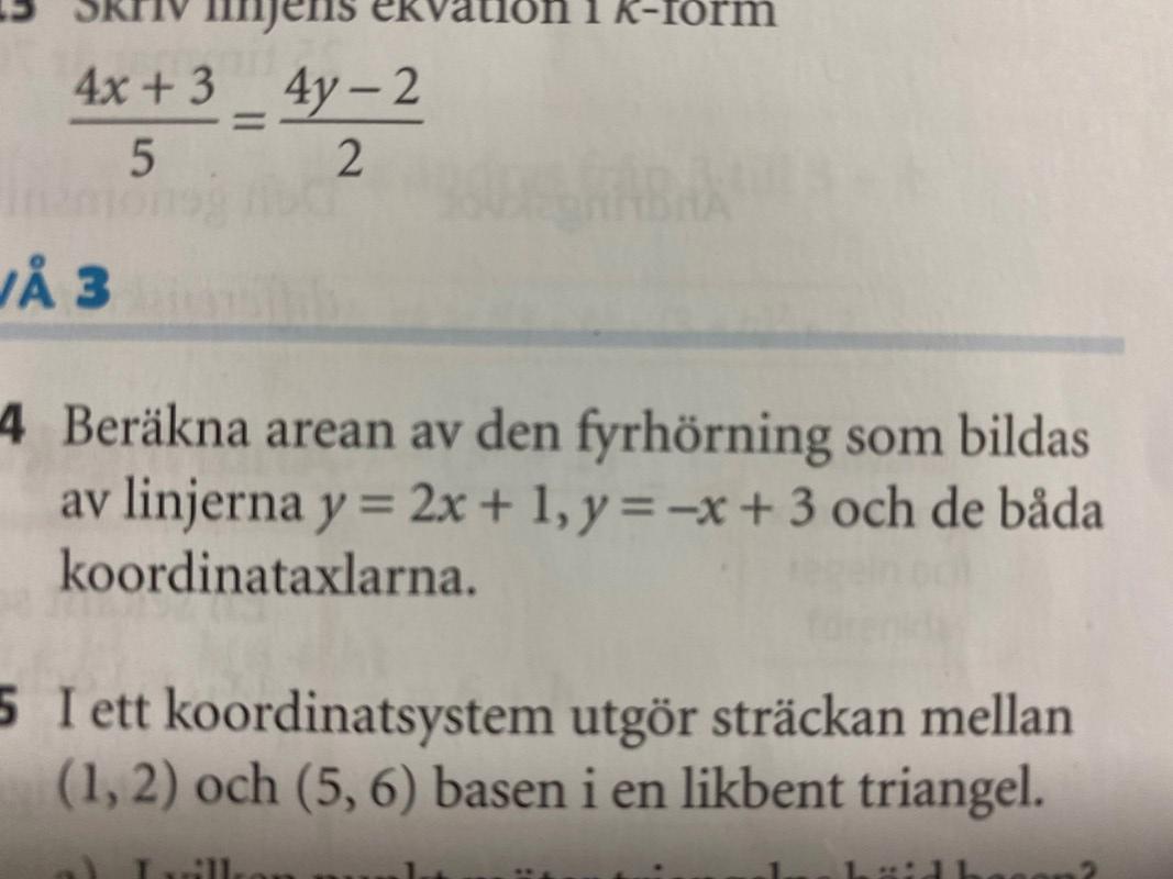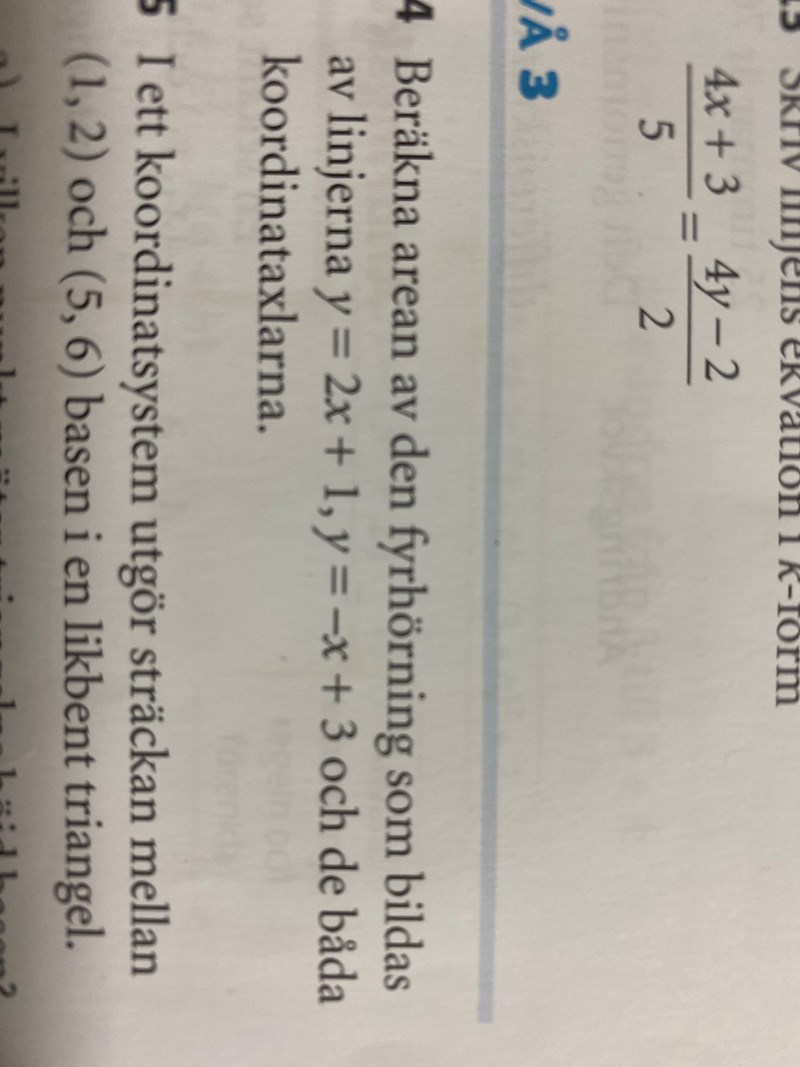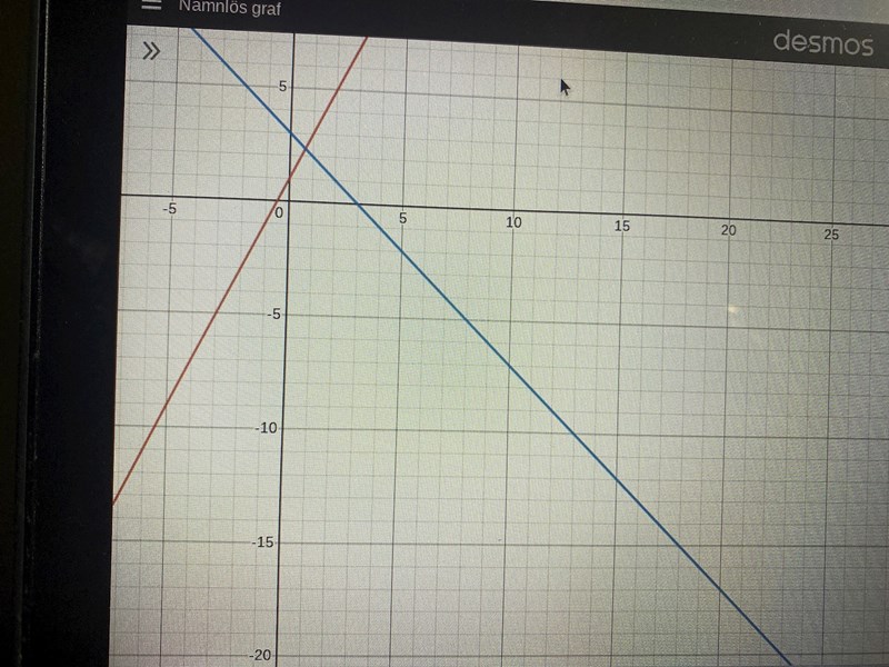 Jag hittar skärningspunkten mellan de 2 linjerna vilket blir 2/3. Sätter in i en av ekvationerna så får jag att y blir 7/3.