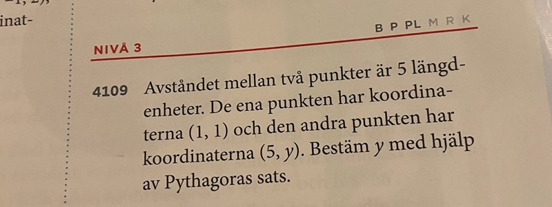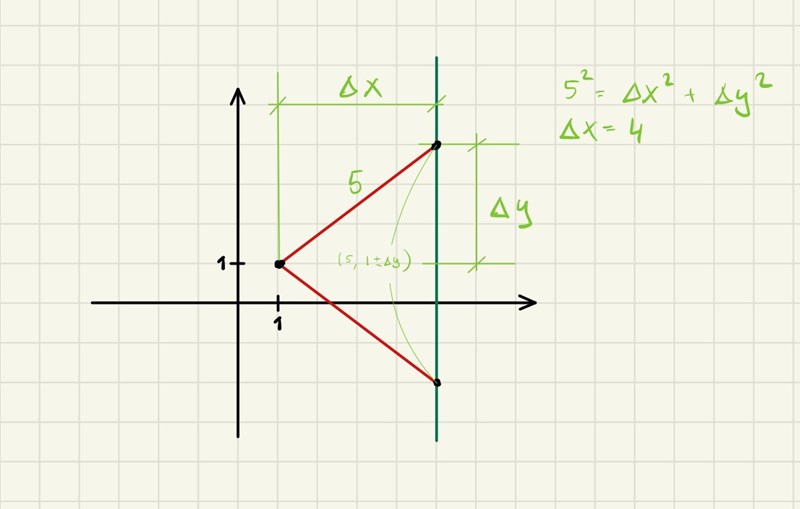Vilka punkter på den linjen ligger 5 l.e. från punkten (1; 1)?