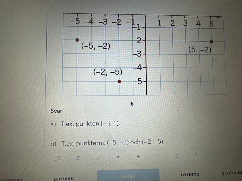 Varför blir den andra punkten b) -2, -5 jag ser ingen koppling