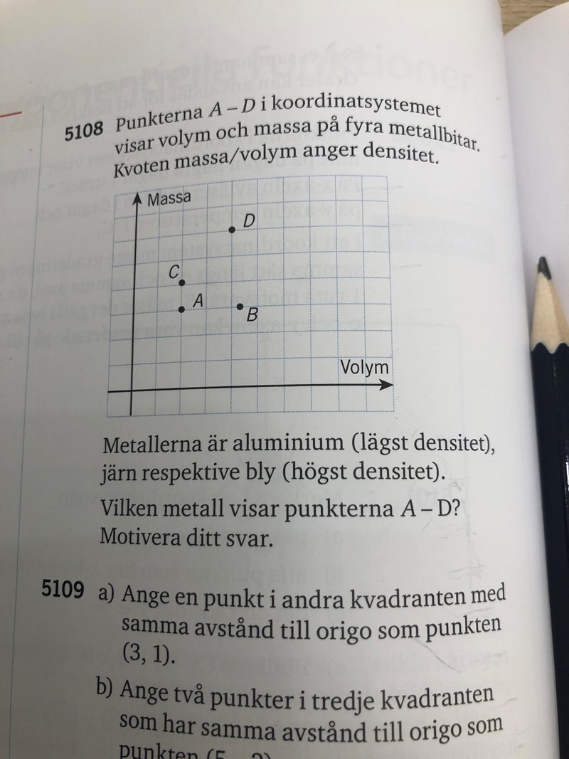 Jag förstår inte hur jag ska tänka.... Jag tänkte att de punkter som ligger högst upp borde ha högst densitet... Men jag fick fel svar. Hur ska man göra/tänka?
