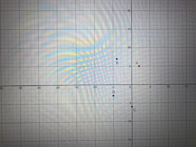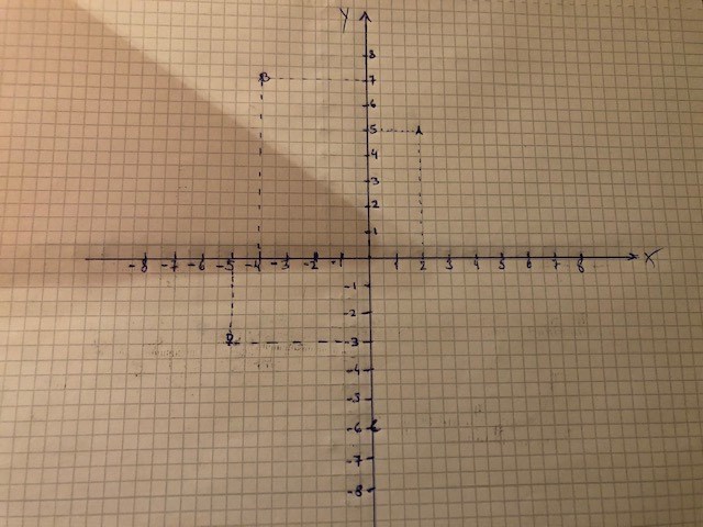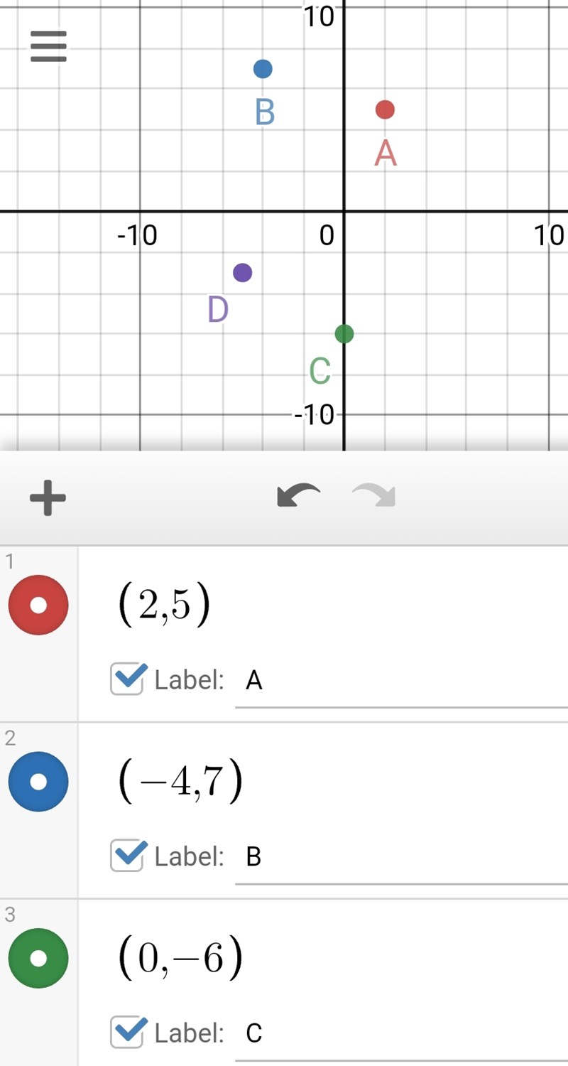 Du måste använda dig av rutorna också. Nu har du markerat punkterna A = (3,5), B = (-6,25;7), C = (6,75;0,5) och D = (8,5;-4) ungefär.