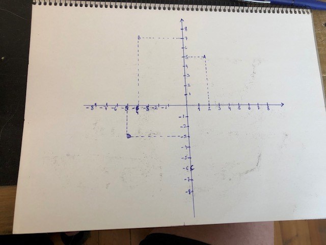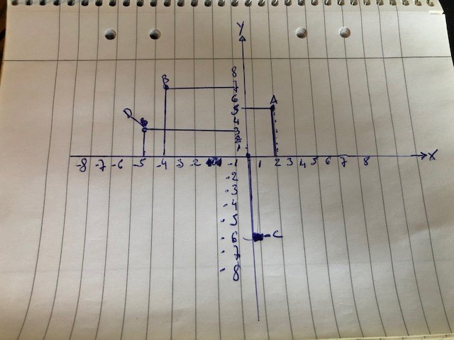 Punkt D är felplacerad - du har markerat punkten (-5,3) när det borde vara (-5,-3).