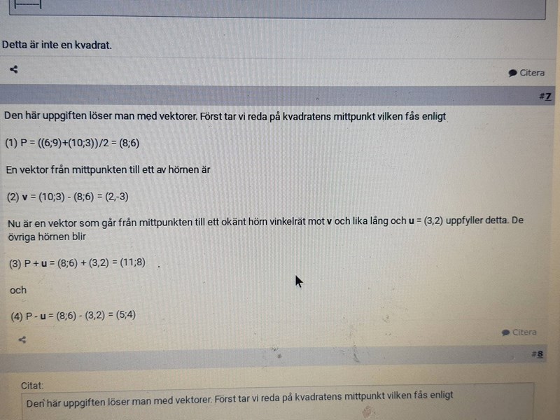 Eftersom u = (3, 2) och v = (2, -3) så gäller även att |u| = |v|.