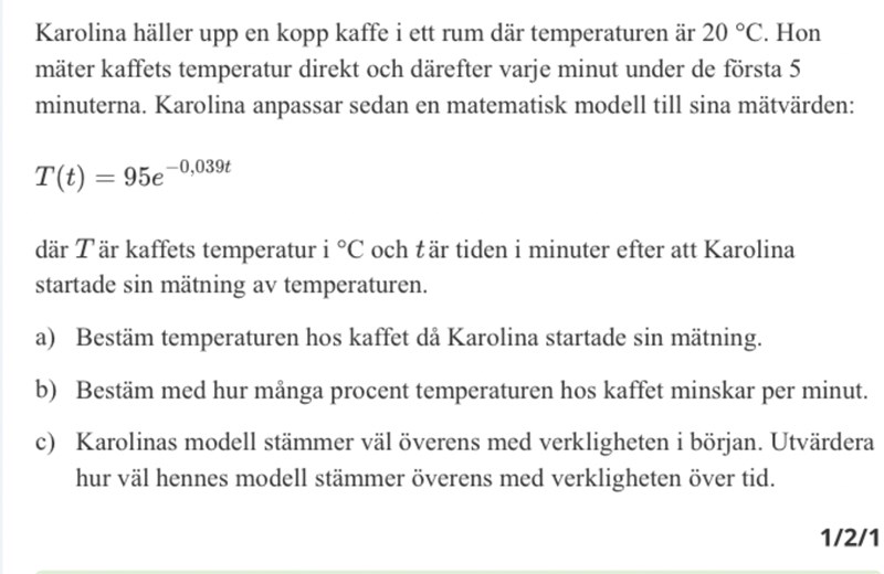 Men hur hittar man hur många procent som kaffets temperatur minskar/min?
