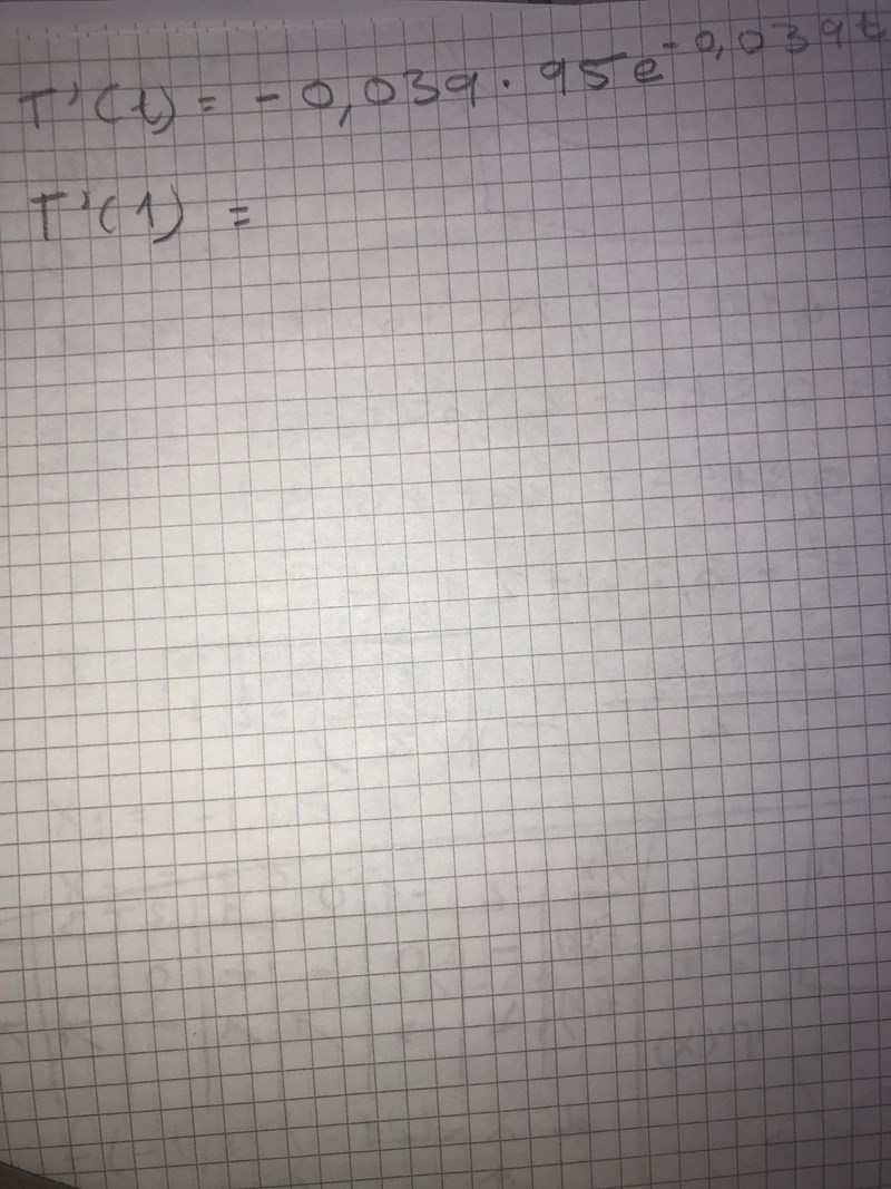 T´(t) som du kommit fram till ÄR minskningen per minut. Den varierar alltså med tiden. T´(1) är hur stor minskningen är vid tiden 1 minut efter start.