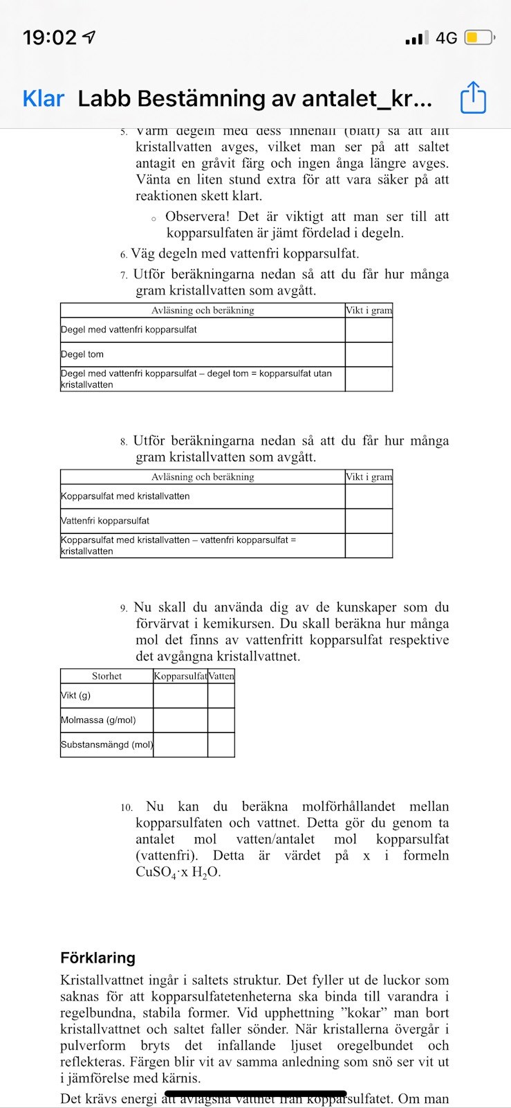 Substansmängen (antal mol) = massan/molmassan (n=m/M ). Du kan hitta molmassan för varje ämne i det periodiska systemet.