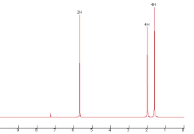 Hej! Jag har fastnat på en uppgift där man ska koppla NMR och MS spektra till rätt molekyl. Jag ser mha NMR spektrum att molekylen innehåller 10 väteatomer bundna till kolatomer, och mha MS spektrum att den totala molekylmassan är 82 g/mol. Denna faktan stämmer dock in på alla molekyler, så hur ska jag gå vidare nu? Tacksam för hjälp!