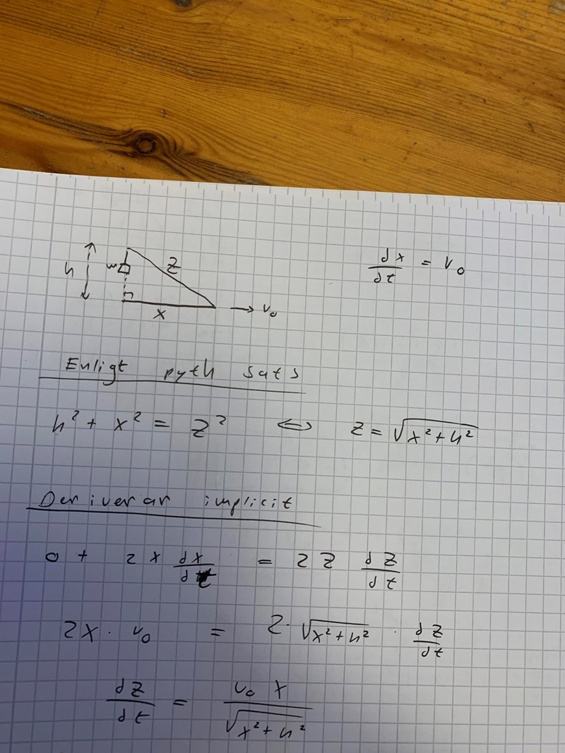 Erika1267 skrev:Är detta korrekt tänkt att dz/dt motsvarar hastigheten för M?