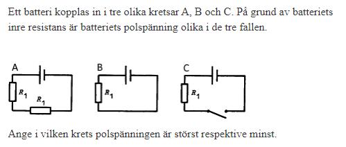 Tricket här är att vi måste ta hänsyn till batteriets inre resistans. Fallet i mitten blir så här: