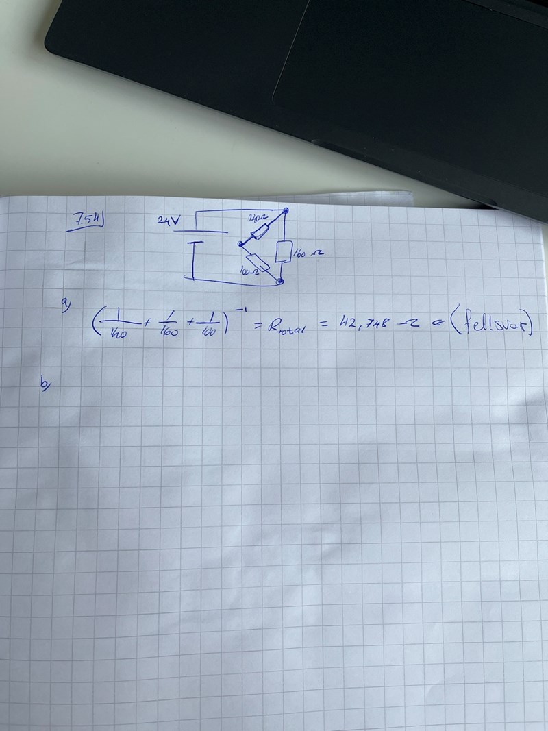 Jag får a) till 96 ohm, då (1/160)+(1/240)=96 ohm.