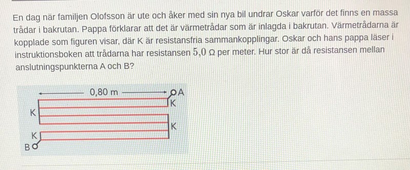 Varje rött streck är en värmetråd i bakrutan som har resistansen 0.8m * 5ohm/m = 4ohm