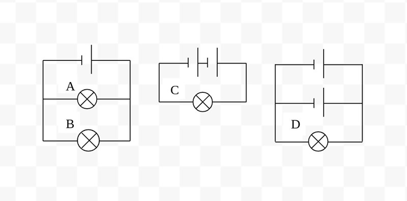 Vad är det i frågan som är oklart? Vet du hur symbolerna för batteri och lampa ser ut?