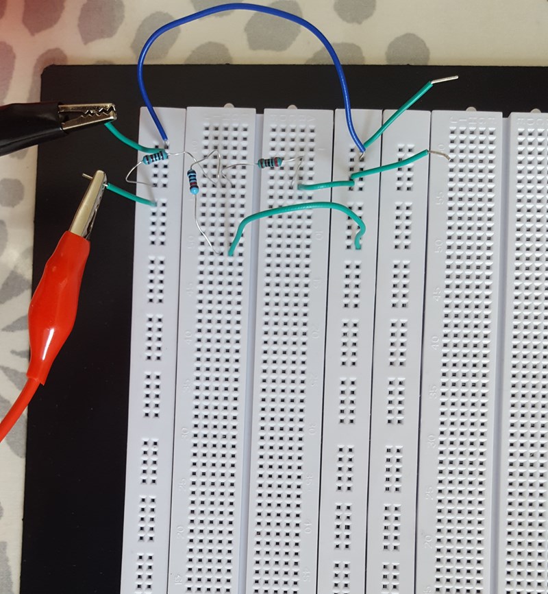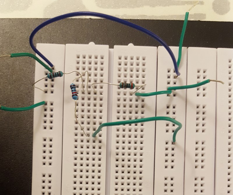 Ett exempel där jag kopplar två resistorer (du kommer säkert på ett sätt att koppla in den tredje):