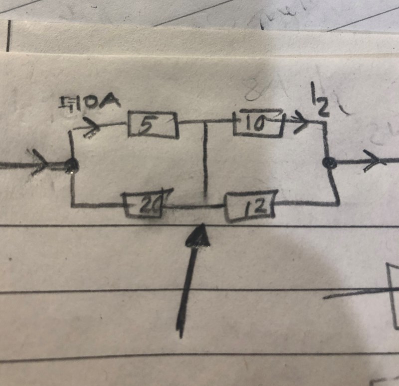 nu har jag spänningen och strömmen genom 5&10 resistenserna, men fastnar där- hur anv jag dessa för att ta reda på i2?