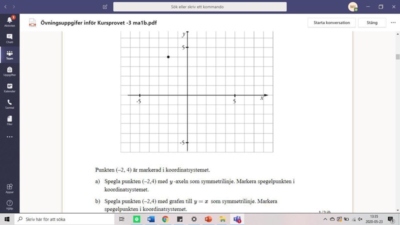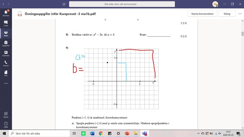 Svaret på a ska vara att du markerar en punkt i koordinatsystemet. Vilken punkt har du markerat?