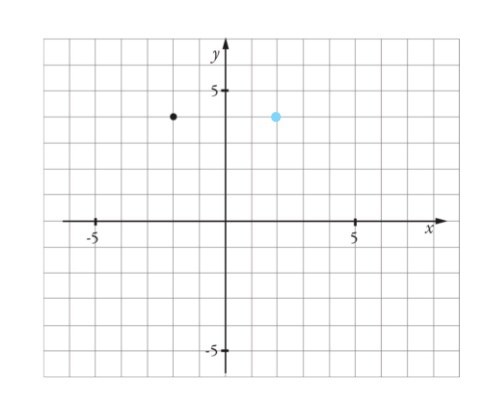 Den blåa punkten har koordinaterna (4, 2) och det är inte rätt svar på b-uppgiften.