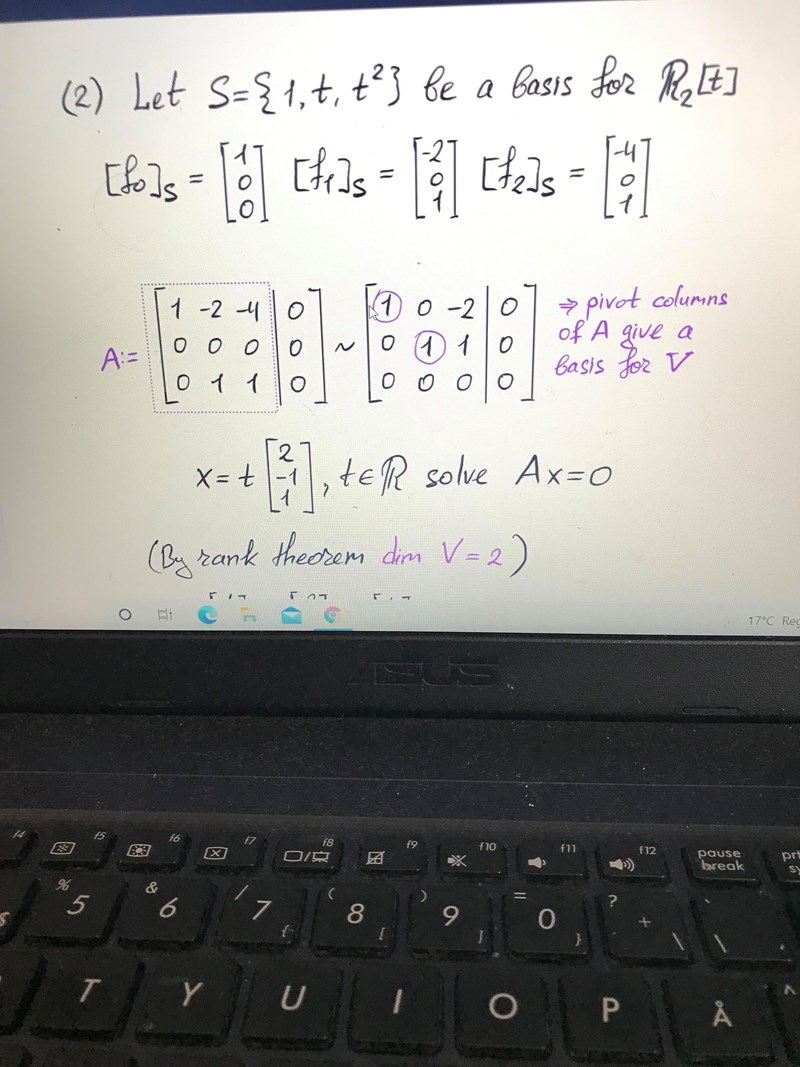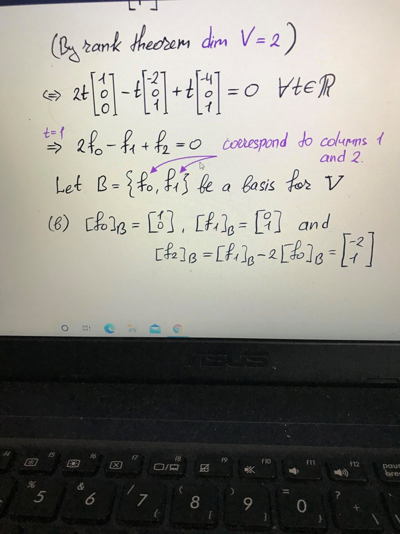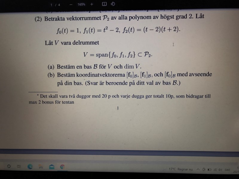 Men du skriver själv att "dim V = 2" och "B = {e0,e1} är en bas för V".