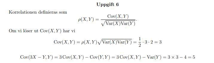 - Kovariansen får du från korrelationskoefficienten som