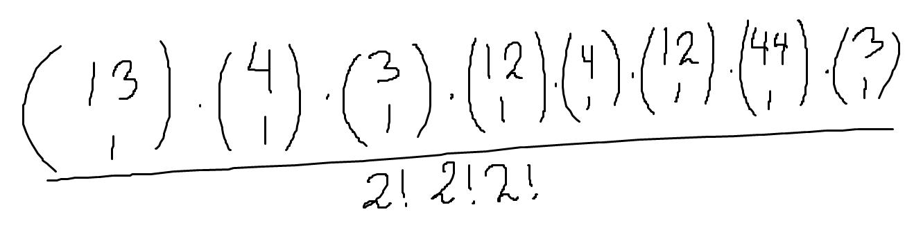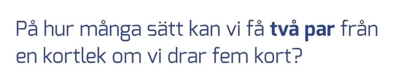 Först väljer du två valörer, och sedan väljer du två kort till valör 1, och sedan två kort till valör 2. Du skulle också kunna göra så här: