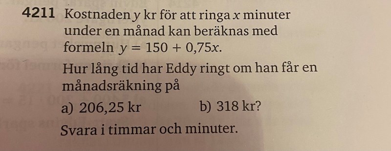 Hur gör jag på a? Försökte skriva 150+0,75x=206,25 är de rätt?