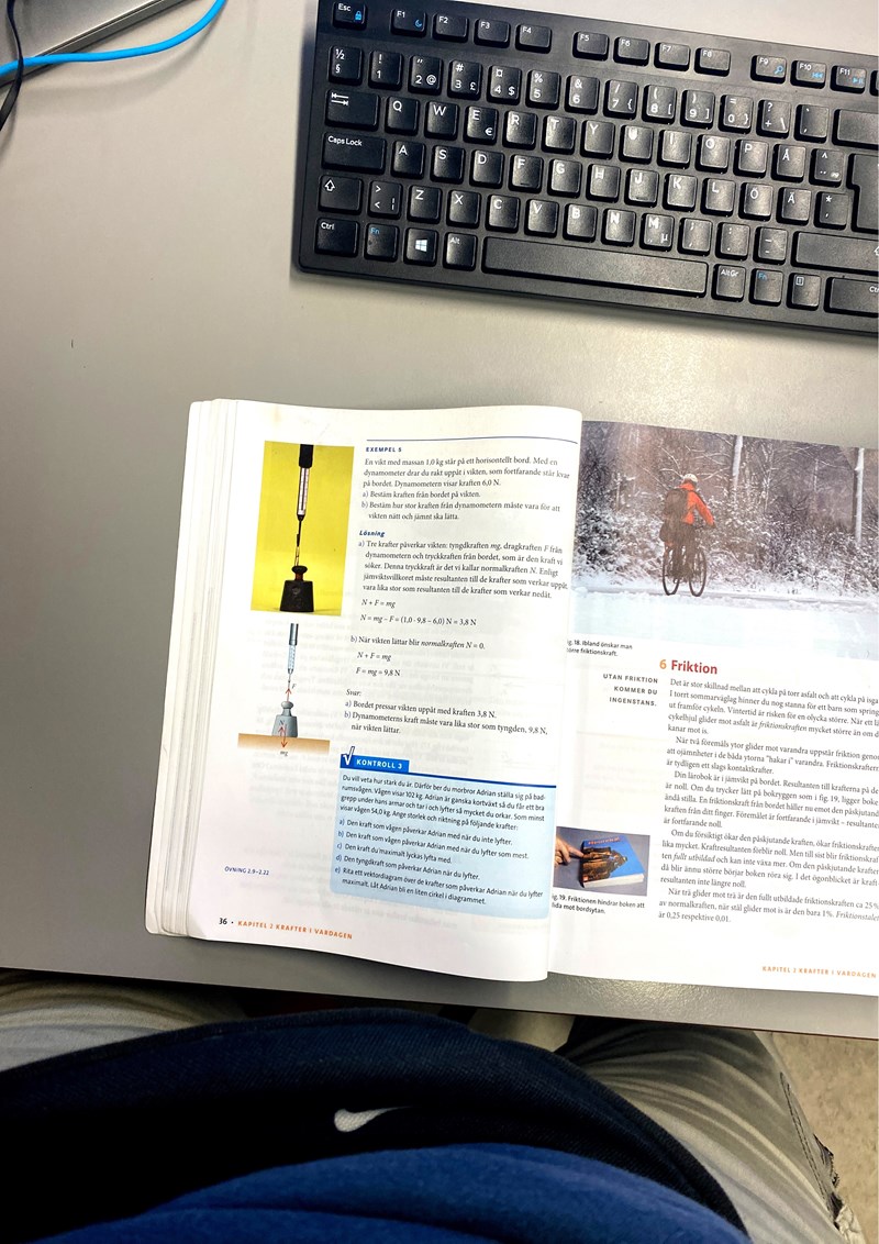 Hur tolka man den här svaret? När dynamometern vara 9.8 N (lika stora som tyngden) då kommer vikten lyftas från bordet?