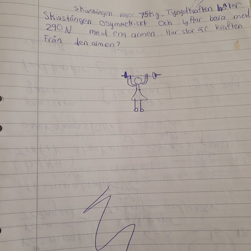 FysikStugan skrev:Vilken kraft kommer från skivstången? Vilka krafter gör så att inte skivstången inte faller i marken?