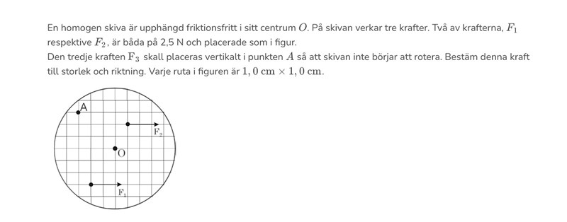 Tänkte det också först men facit visar såhär. Jag visste inte att man kunde ”drar” ut krafter? Så på sån här uppgifter kan man typ förlänga krafterna tills det ligger i linje med vridpunkten?
