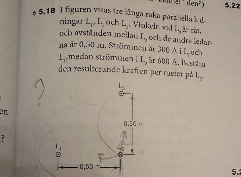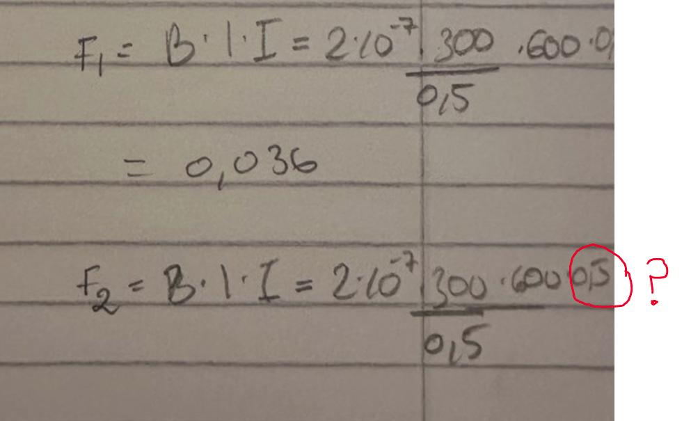 Hej jag förstår inte varför jag får fel kraft från vardera ledare, jag får att varje ledare bidrar med 0,036 N men svaret är 0,072N ?