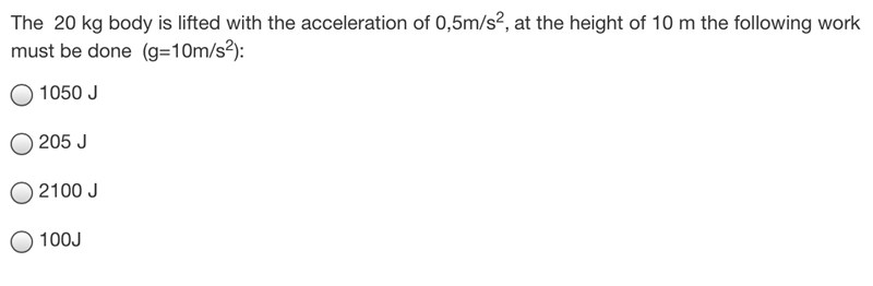 hur mycket kraft utövar du om du lyfter något som väger 20kg till en höjd på 10m med en acceleration på 0,5m/s2. (g=10m/s2)