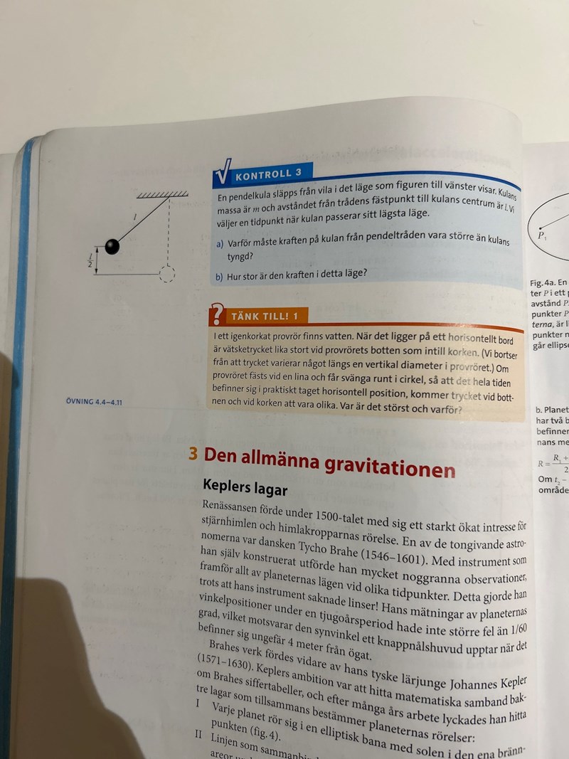 i facit står det att den resulterade kraften måste vara riktad mot upphängningspunkten. men om den börjar i vila hur kommer det sig att det finns en Fres och varför just mot upphängningspunkten….