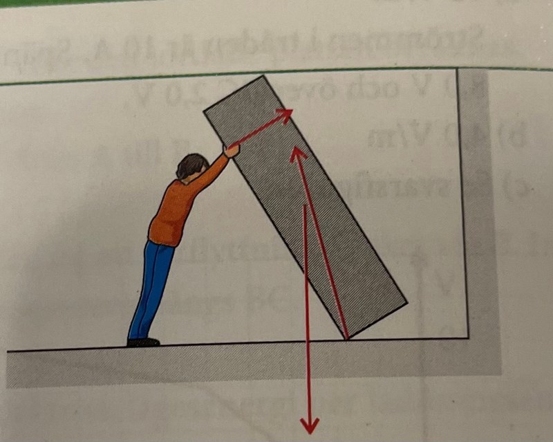 Den lutade röda pilen (från golvet) är inte normalkraften utan den resulterande kraften av normalkraft och friktionskraft.