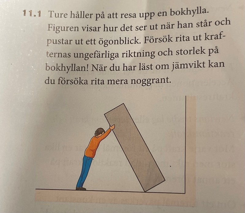 Jag förstår inte facit. Varför är normalkraften sne om golvet är rakt? Varför finns det ingen friktionskraft?