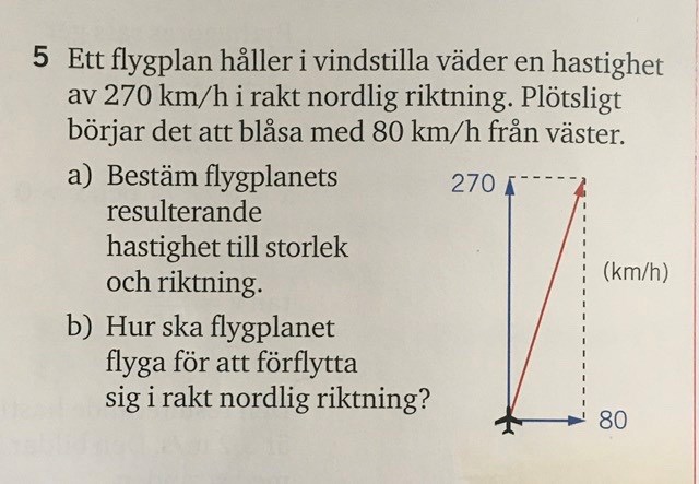 Hej, jag har fastnat på avsnittet om vektorer/tema:kraft och hastigheter i matte 5000 2a, sida 216, uppgift 5.