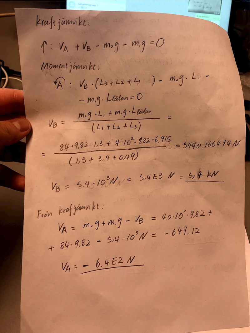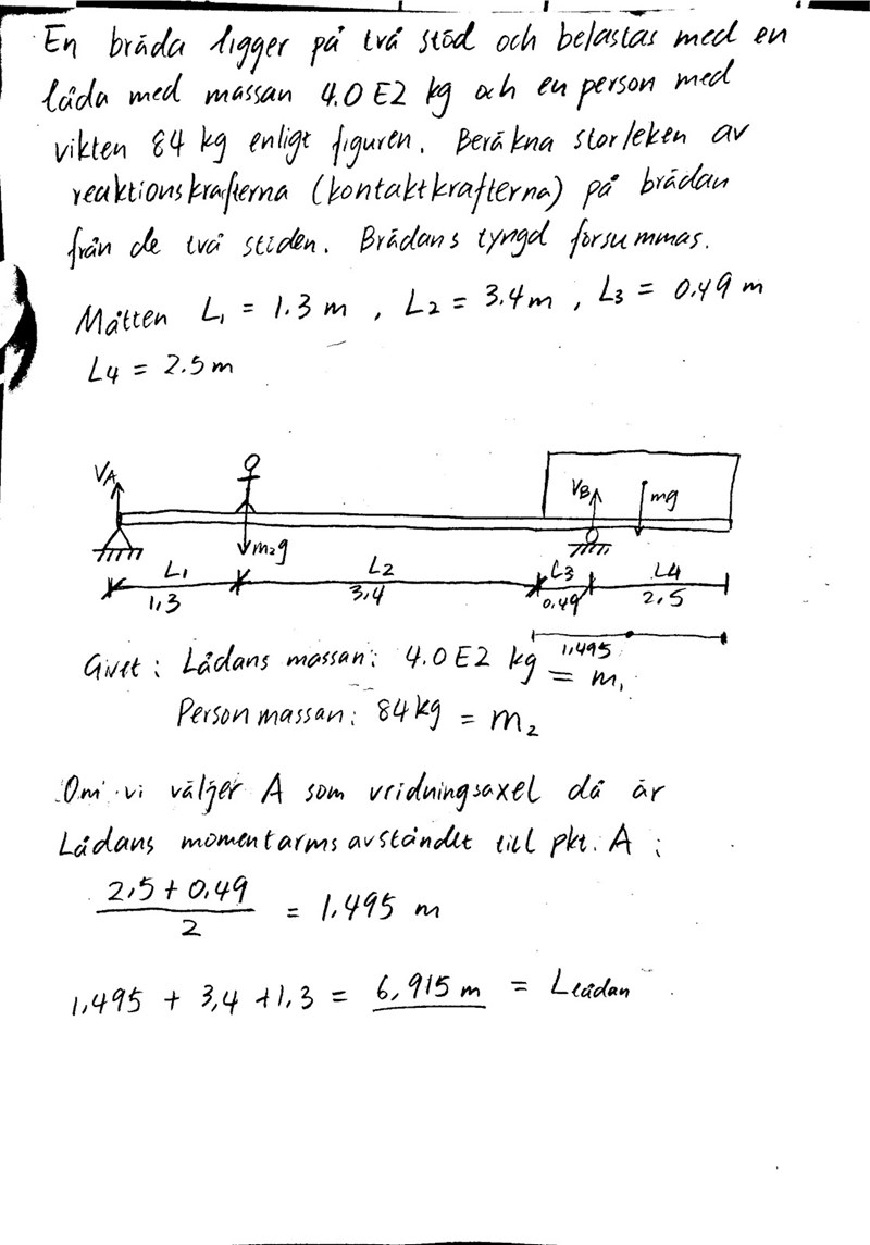 Jo, summa, alltså den momentarm för lådan i punkten A borde bli 6.195, inte 6.915 eller hur?