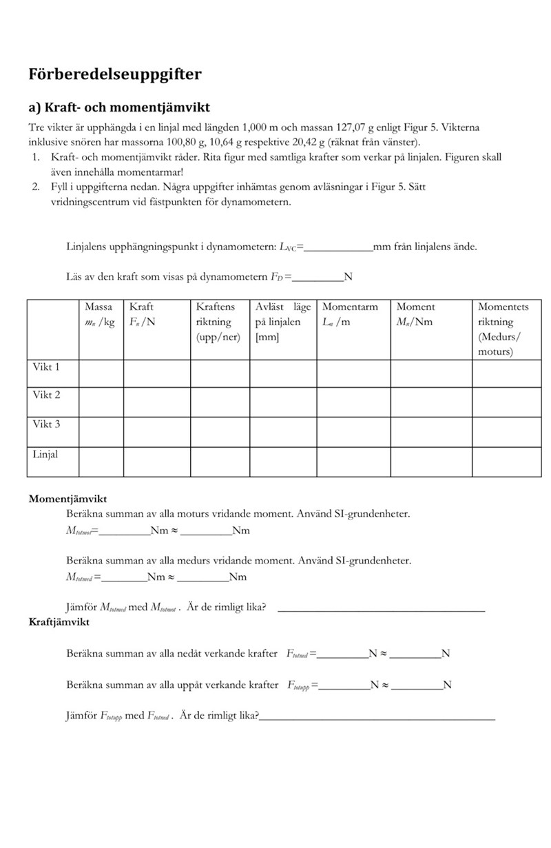 För linjalen ska du i tabellen ange tyngdpunktens läge (som du gjorde rätt i ritningen).