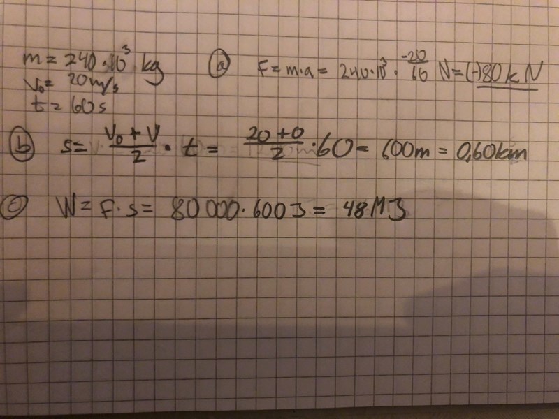 Jag har en fundering kring fråga b. Varför kan man ta (V0 + V)/2 x t för att få sträckan..?