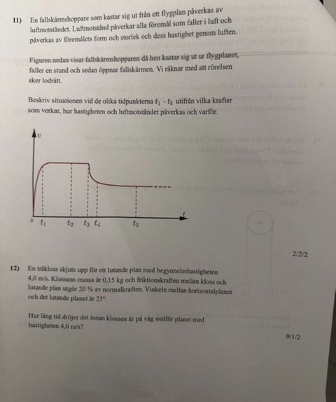 Behöver hjälp med 11an. Vet inte hur jag ska börja och hur jag ska beskriva situationen med de olika krafterna för varje tidpunkt.